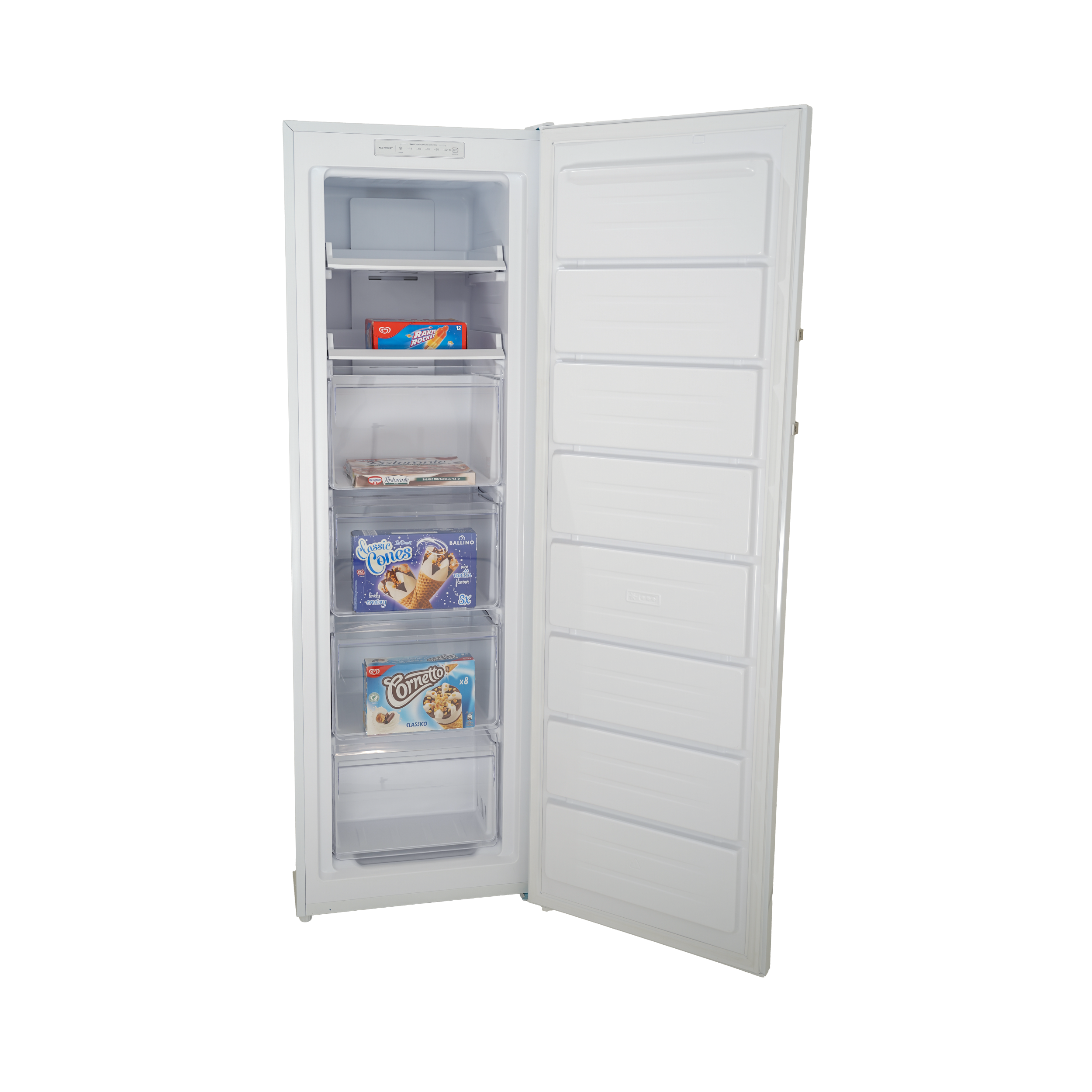 Deze vrijstaande vriezer heeft een netto inhoud van 204 liter. Dankzij de vier transparante laden en de twee uitschuifbare plateau's, is er voldoende ruimte om uw producten in deze vriezer op te bergen. De GS272-NF-04EW heeft een E label waardoor dit een energiezuinige vriezer is. Dankzij de digitale thermostaat is de vriezer gemakkelijk naar wens in te stellen. De No-Frost technologie zorgt ervoor dat er niet meer handmatig ontdooit hoeft te worden! Met de Super Freezer functie wordt de versheid van deze producten snel en optimaal bewaard, hierdoor blijven bijvoorbeeld vitamines en mineralen beter behouden. Daarnaast beschikt het apparaat over een deur alarm. Hierdoor krijgt u een melding zodra de deur van de vriezer te lang open staat.