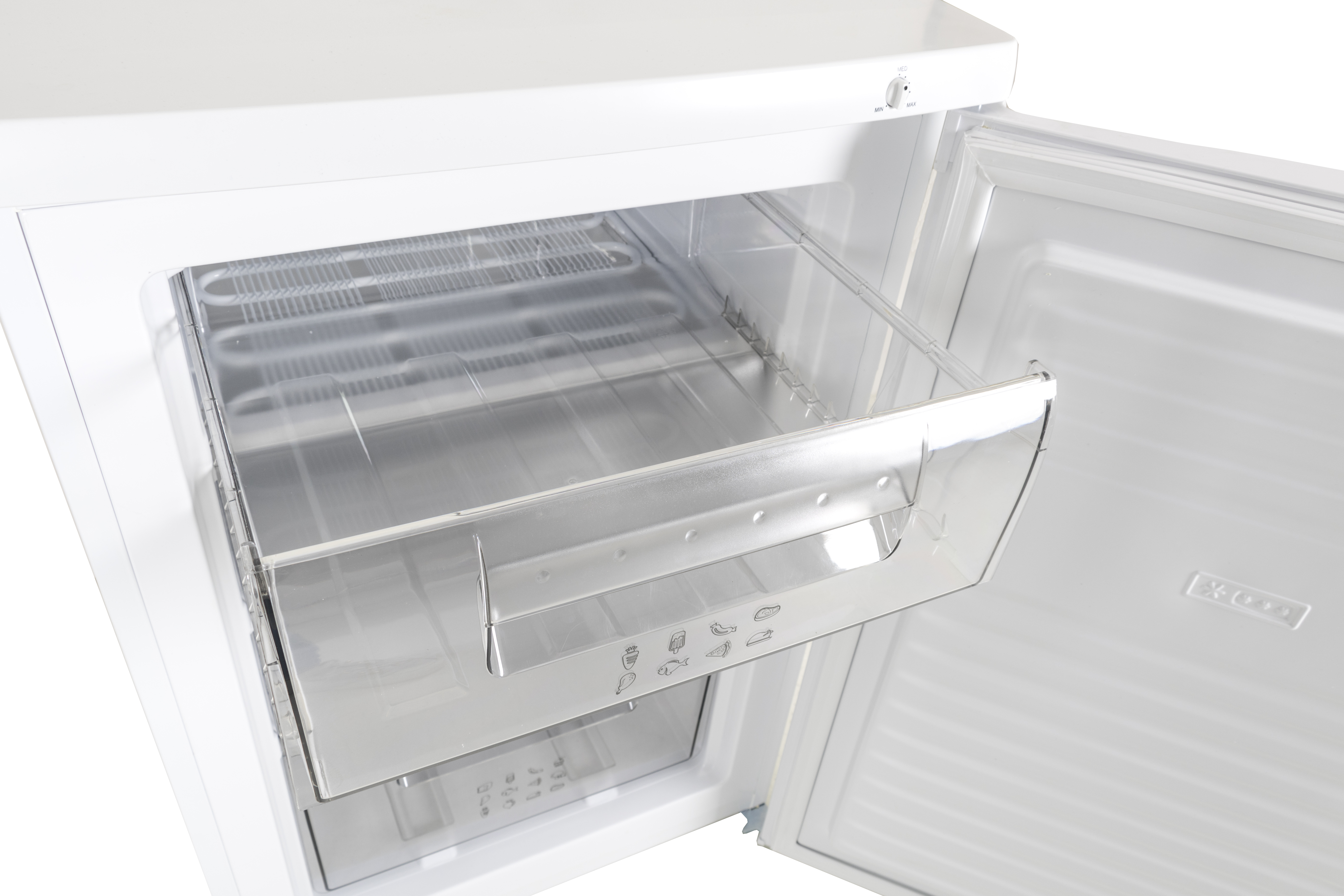 De Exquisit GS80-040EW is een energiezuinig tafelmodel vriezer. Met een inhoud van 91 liter en 4 kg invries capaciteit per dag, is dit een geschikt vriezer voor een eenpersoonshuishouden of klein gezin. Door de aanpasbare draairichting van de deur, past deze vriezer gemakkelijk in meerdere keukens. De temperatuurregelaar zit aan de voorkant van de vriezer en beschikt over drie standen; MAX, MIN, NORMAL. Omdat de vriezer maar een geluidsniveau van 40 dB(A) heeft, hoort u de vriezer nauwelijks.