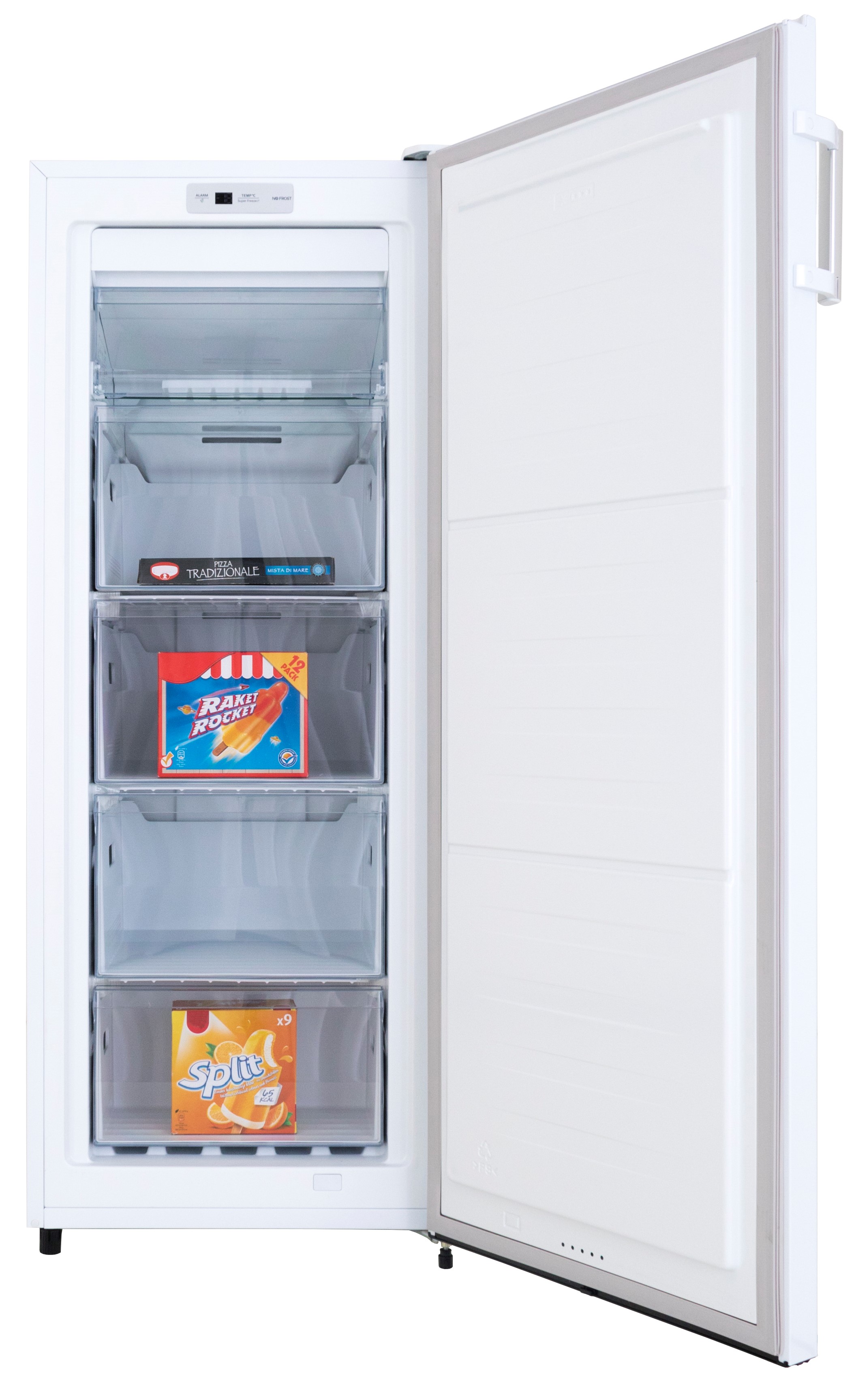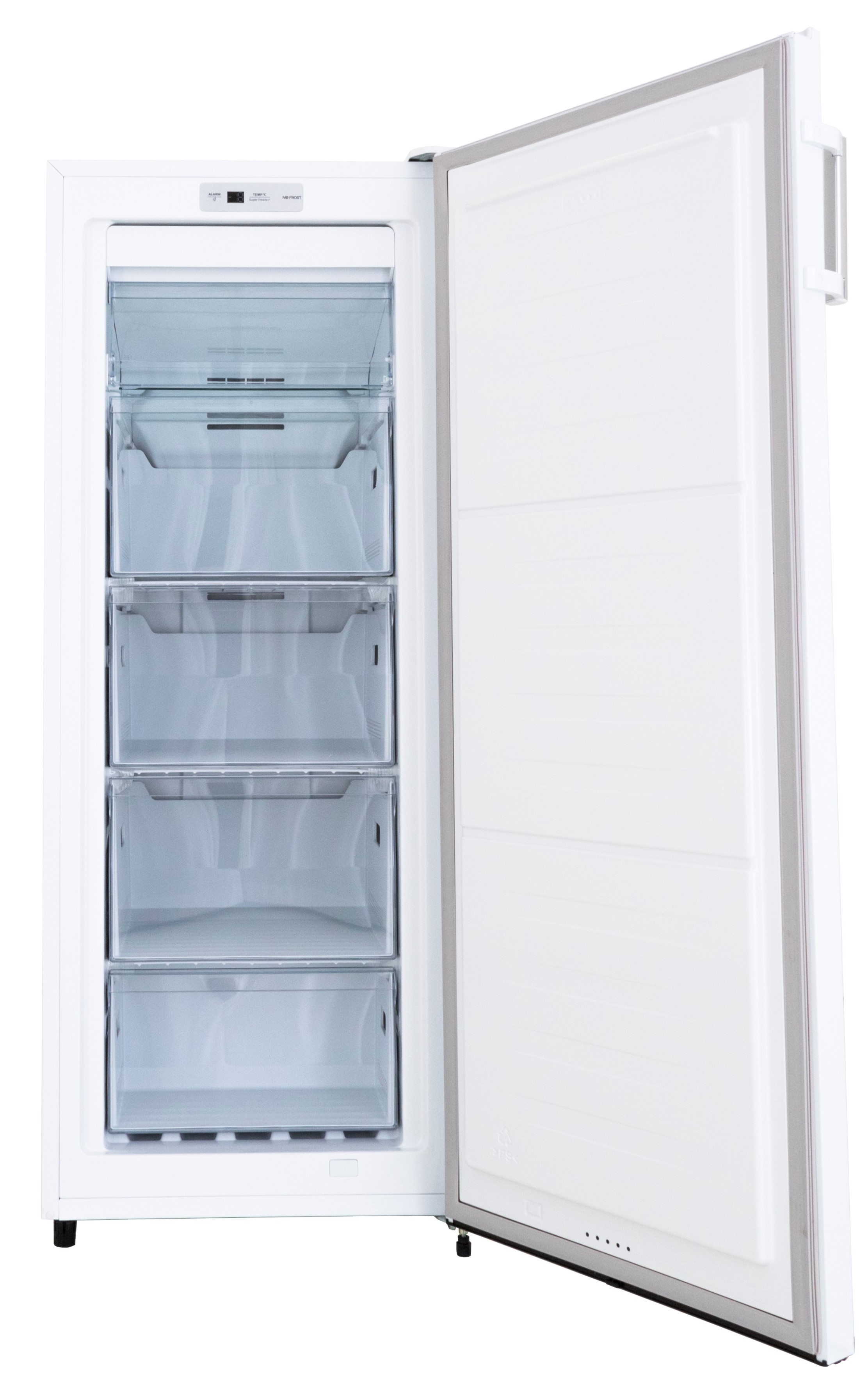 Deze vrijstaande vriezer heeft een netto inhoud van 155 liter. Dankzij de vier transparante laden en het uitschuifbare plateau, is er voldoende ruimte om uw producten in deze vriezer op te bergen. De GS231-NF-H-010EW heeft een E label waardoor dit een energiezuinige vriezer is. Dankzij de digitale thermostaat is de vriezer gemakkelijk naar wens in te stellen. De No-Frost technologie zorgt ervoor dat er niet meer handmatig ontdooit hoeft te worden! Met de Super Freezer functie wordt de versheid van deze producten snel en optimaal bewaard, hierdoor blijven bijvoorbeeld vitamines en mineralen beter behouden. Daarnaast beschikt het apparaat over een deur alarm. Hierdoor krijgt u een melding zodra de deur van de vriezer te lang open staat.